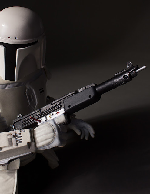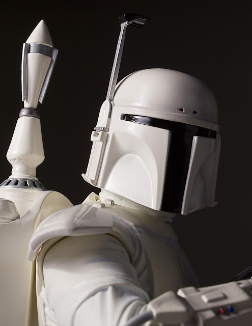This design is based on an early concept for Boba Fett, as seen in a screen test for The Empire Strikes Back in 1978. You can watch that video below: